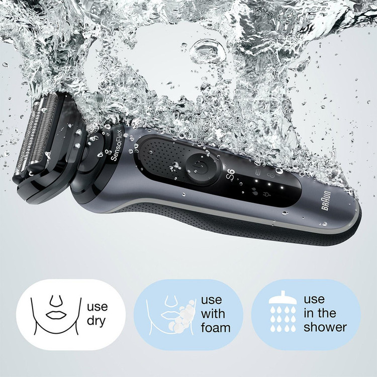 این مدل ریش تراش براون از سری 6 به راحتی می تواند یک اصلاح ملایم به طور شگفت انگیز برای پوست های بسیار حساس انجام دهد. این ریش تراش توسط براون برای بهترین کارایی ساخته شده است. فناوری AutoSense اسکن می کند و با تراکم ریش شما را سازگار می شود و در هر اصلاح موهای بیشتری را می گیرد و اصلاح می کند. بیشترین راحتی در ریش های زبر و سخت را به شما می دهد. سری SensoFlex ریش تراش سری 6 براون از لحاظ آسیب شناسی پوستی کاملا تست و مطالعه شده که به راحتی فشار را برای پوست های حساس و تحریک پذیر به حداقل می رساند و در عین حال یک اصلاح بی نقص را برای شما انجام می دهد. سری منعطف SensoFlex و شناوری جداگانه هر کدام از تیغه های SensoFoil آن برای به حداقل رساندن فشار روی پوست حساس طراحی شده است. دسته ارگونومیک این ریش تراش براون اصلاحی بی نقص را با حرکت ساده و یک طرفه امکان پذیر می کند. این طراحی دسته به شما امکان می دهد که اصلاحی راحت و آسان داشته باشید. پشت دستگاه از لاستیک ژله ای می باشد که در هنگام اصلاح زیر دوش یا مرطوب می توانید نهایت کنترل بر اصلاح و دستگاه را همزمان داشته باشید. با یکبار شارژ می توانید تا 3 هفته اصلاح انجام دهید که یک ساعته شارژ کامل می شود. همچنین شارژ سریع 5 دقیقه ای برای یک اصلاح کامل را نیز دارد. میزان شارژ ریش تراش سری 6 از طریق صفحه LED آن قابل نمایش می باشد. این ماشین اصلاح صورت براون برای استفاده خشک و مرطوب کامل ضدآب می باشد. طراحی شده برای اصلاح خشک، با کف ریش، ژل اصلاح و یا زیر دوش. پس برای براون 61N1000s فرقی نمی کند اصلاح مرطوب در حمام و زیر دوش انجام دهید یا به صورت خشک؛ بستگی به پوست صورت شما دارد با چه حالتی راحت و سازگار باشد.