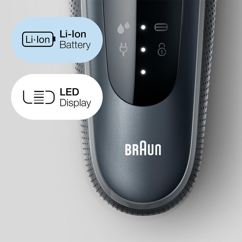 این مدل ریش تراش براون از سری 6 به راحتی می تواند یک اصلاح ملایم به طور شگفت انگیز برای پوست های بسیار حساس انجام دهد. این ریش تراش توسط براون برای بهترین کارایی ساخته شده است. فناوری AutoSense اسکن می کند و با تراکم ریش شما را سازگار می شود و در هر اصلاح موهای بیشتری را می گیرد و اصلاح می کند. بیشترین راحتی در ریش های زبر و سخت را به شما می دهد. سری SensoFlex ریش تراش سری 6 براون از لحاظ آسیب شناسی پوستی کاملا تست و مطالعه شده که به راحتی فشار را برای پوست های حساس و تحریک پذیر به حداقل می رساند و در عین حال یک اصلاح بی نقص را برای شما انجام می دهد. سری منعطف SensoFlex و شناوری جداگانه هر کدام از تیغه های SensoFoil آن برای به حداقل رساندن فشار روی پوست حساس طراحی شده است. دسته ارگونومیک این ریش تراش براون اصلاحی بی نقص را با حرکت ساده و یک طرفه امکان پذیر می کند. این طراحی دسته به شما امکان می دهد که اصلاحی راحت و آسان داشته باشید. پشت دستگاه از لاستیک ژله ای می باشد که در هنگام اصلاح زیر دوش یا مرطوب می توانید نهایت کنترل بر اصلاح و دستگاه را همزمان داشته باشید. با یکبار شارژ می توانید تا 3 هفته اصلاح انجام دهید که یک ساعته شارژ کامل می شود. همچنین شارژ سریع 5 دقیقه ای برای یک اصلاح کامل را نیز دارد. میزان شارژ ریش تراش سری 6 از طریق صفحه LED آن قابل نمایش می باشد. این ماشین اصلاح صورت براون برای استفاده خشک و مرطوب کامل ضدآب می باشد. طراحی شده برای اصلاح خشک، با کف ریش، ژل اصلاح و یا زیر دوش. پس برای براون 61N1000s فرقی نمی کند اصلاح مرطوب در حمام و زیر دوش انجام دهید یا به صورت خشک؛ بستگی به پوست صورت شما دارد با چه حالتی راحت و سازگار باشد.